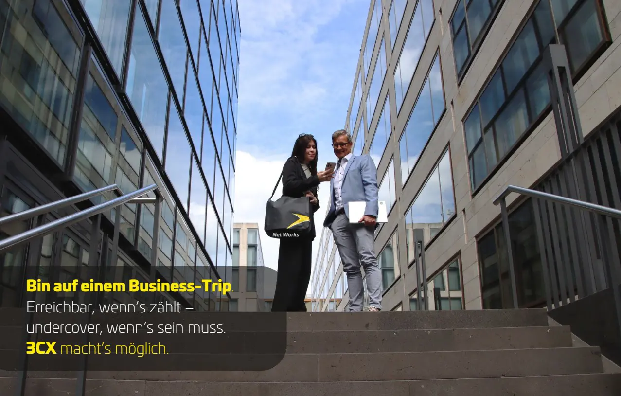 Ob zwischen zwei Städten oder mitten im Grünen – mit 3CX bleibt Ihr Büro immer dort, wo Sie gerade sind.